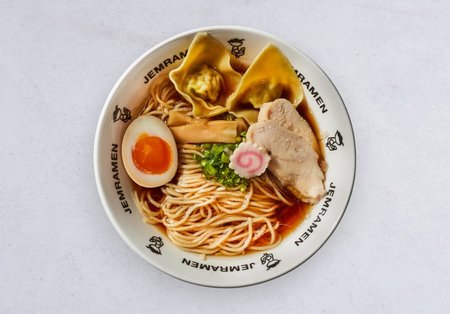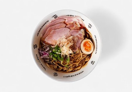 Shio tare, olej chilli, yaki tori, won ton, kolba kukurydzy, dymka, mizuna, jajko