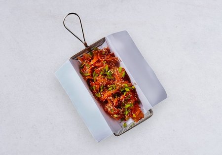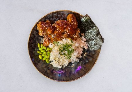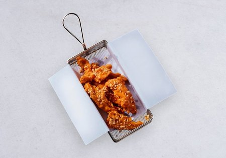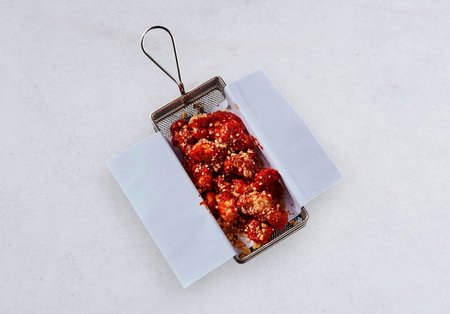 kurczaki w ostrym sosie Gochujang z habanero posypane orzeszkami