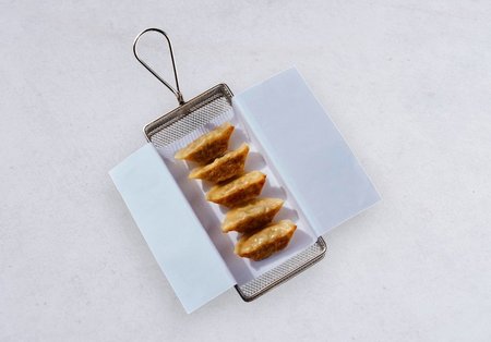 Shoyu tare, wywar grzybowy, olej z dymki, gyoza, menma, dymka, czerwona cebula